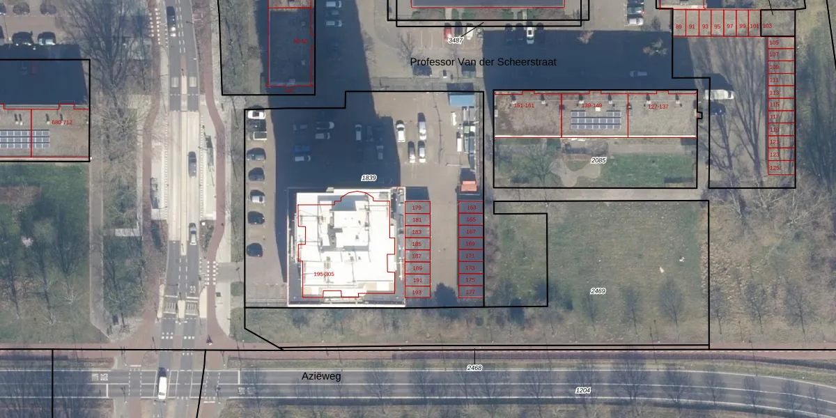 Professor Van der Scheerstraat 179 is gelegen op kadastraal perceel HLM02P1839. Deze kadastrale aanduiding is uniek en wordt gebruikt door het Kadaster om eigendomsrechten en andere zakelijke rechten vast te leggen. Het perceel maakt onderdeel uit van de kadastrale gemeente Haarlem.
