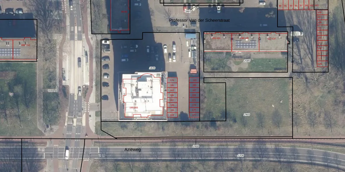 Het perceel waarop Professor Van der Scheerstraat 181 staat heeft een oppervlakte van 2890 m². Dit is een zeer groot perceel. De perceeloppervlakte wordt geregistreerd door het Kadaster. Gedetailleerde informatie over de maten van dit perceel kunt u vinden in het rapport Kadastrale kaart met maatvoering van Professor Van der Scheerstraat 181.