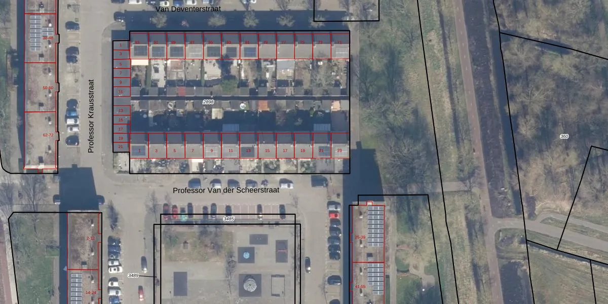 Professor Van der Scheerstraat 19 is gelegen op kadastraal perceel HLM02P2898. Deze kadastrale aanduiding is uniek en wordt gebruikt door het Kadaster om eigendomsrechten en andere zakelijke rechten vast te leggen. Het perceel maakt onderdeel uit van de kadastrale gemeente Haarlem.