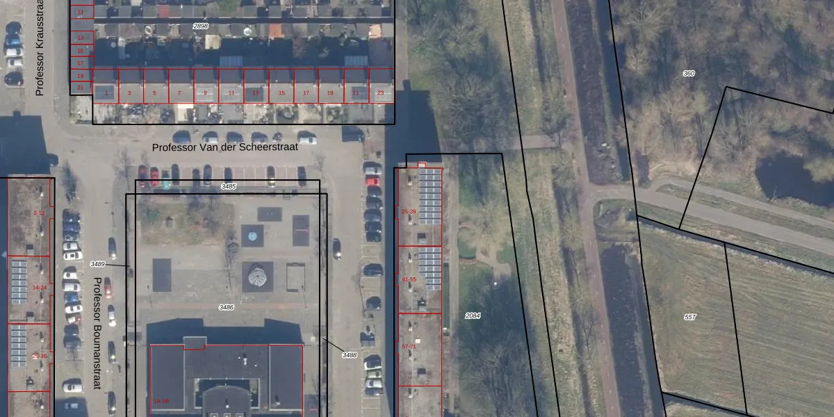 Het perceel waarop Professor Van der Scheerstraat 37 staat heeft een oppervlakte van 3242 m². Dit is een zeer groot perceel. De perceeloppervlakte wordt geregistreerd door het Kadaster. Gedetailleerde informatie over de maten van dit perceel kunt u vinden in het rapport Kadastrale kaart met maatvoering van Professor Van der Scheerstraat 37.