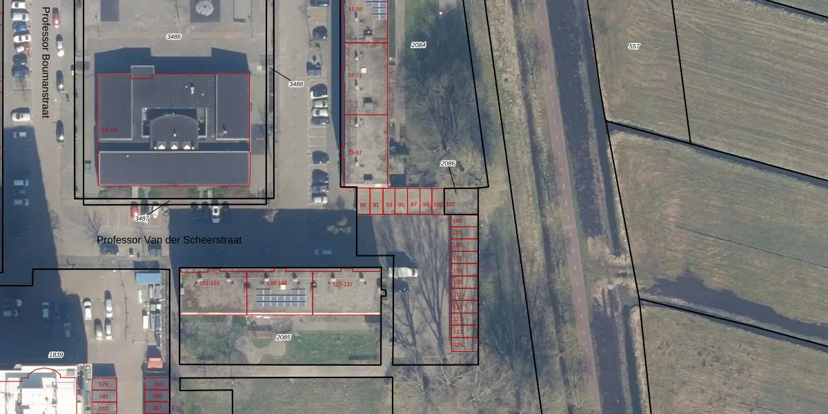 Het perceel waarop Professor Van der Scheerstraat 97 staat heeft een oppervlakte van 3242 m². Dit is een zeer groot perceel. De perceeloppervlakte wordt geregistreerd door het Kadaster. Gedetailleerde informatie over de maten van dit perceel kunt u vinden in het rapport Kadastrale kaart met maatvoering van Professor Van der Scheerstraat 97.