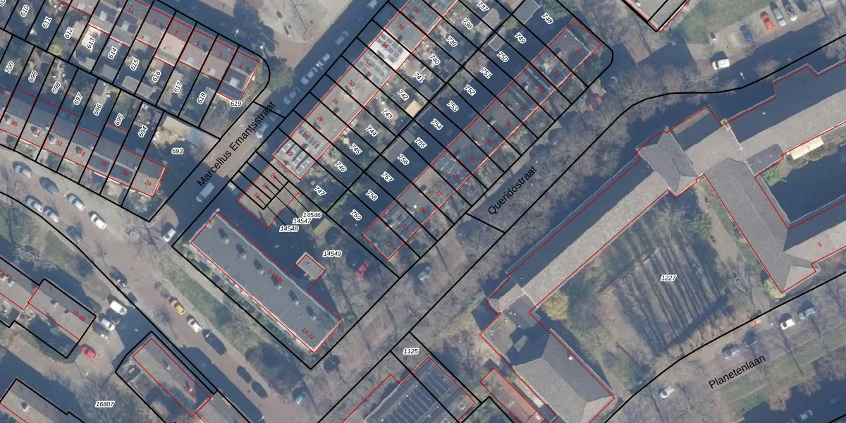 Queridostraat 25 is gelegen op kadastraal perceel STN01D757. Deze kadastrale aanduiding is uniek en wordt gebruikt door het Kadaster om eigendomsrechten en andere zakelijke rechten vast te leggen. Het perceel maakt onderdeel uit van de kadastrale gemeente Schoten.