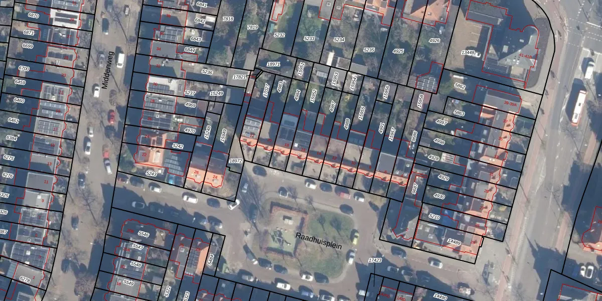 Gebruik de zoekbalk of klik op een perceel voor informatie over de adressen binnen dit perceel.