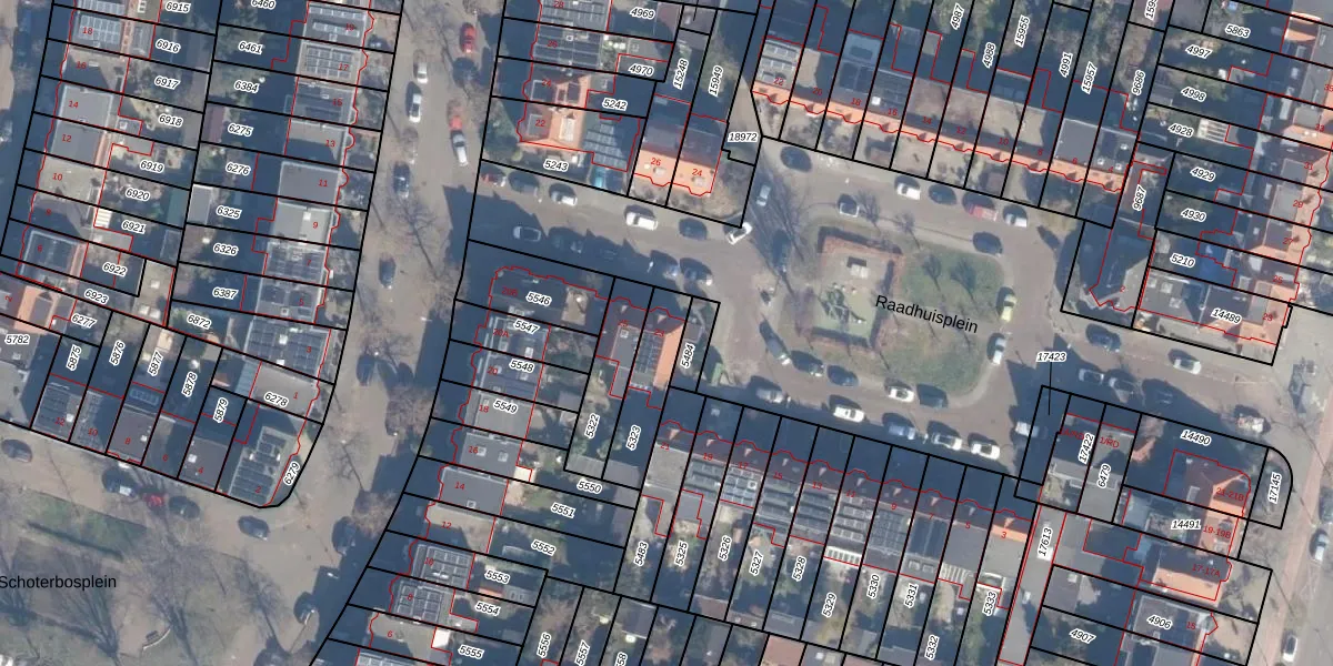 Raadhuisplein 23 is gelegen op kadastraal perceel STN01B5323. Deze kadastrale aanduiding is uniek en wordt gebruikt door het Kadaster om eigendomsrechten en andere zakelijke rechten vast te leggen. Het perceel maakt onderdeel uit van de kadastrale gemeente Schoten.
