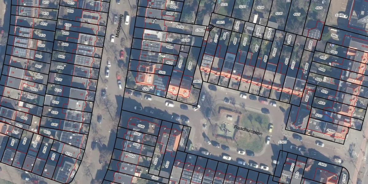 Het perceel waarop Raadhuisplein 24 staat heeft een oppervlakte van 244 m². Dit is een middelgroot perceel. De perceeloppervlakte wordt geregistreerd door het Kadaster. Gedetailleerde informatie over de maten van dit perceel kunt u vinden in het rapport Kadastrale kaart met maatvoering van Raadhuisplein 24.