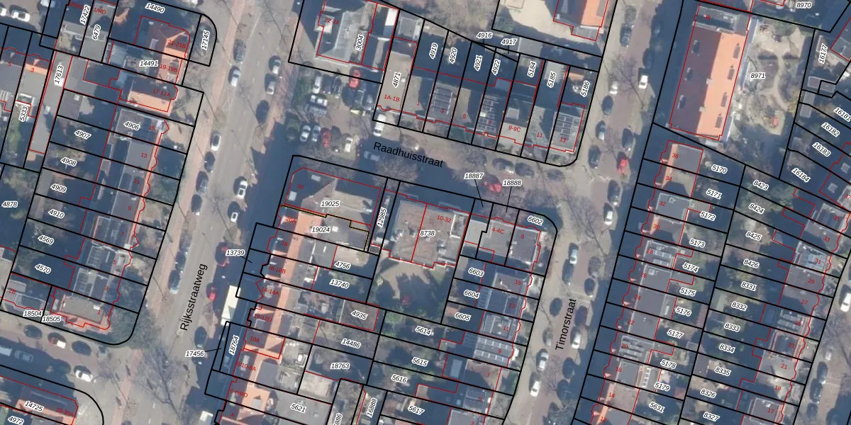 Het perceel waarop Raadhuisstraat 20 staat heeft een oppervlakte van 539 m². Dit is een groot perceel. De perceeloppervlakte wordt geregistreerd door het Kadaster. Gedetailleerde informatie over de maten van dit perceel kunt u vinden in het rapport Kadastrale kaart met maatvoering van Raadhuisstraat 20.