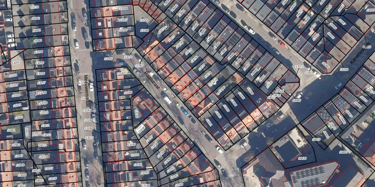 Het perceel waarop Raafstraat 12 staat heeft een oppervlakte van 163 m². Dit is een middelgroot perceel. De perceeloppervlakte wordt geregistreerd door het Kadaster. Gedetailleerde informatie over de maten van dit perceel kunt u vinden in het rapport Kadastrale kaart met maatvoering van Raafstraat 12.