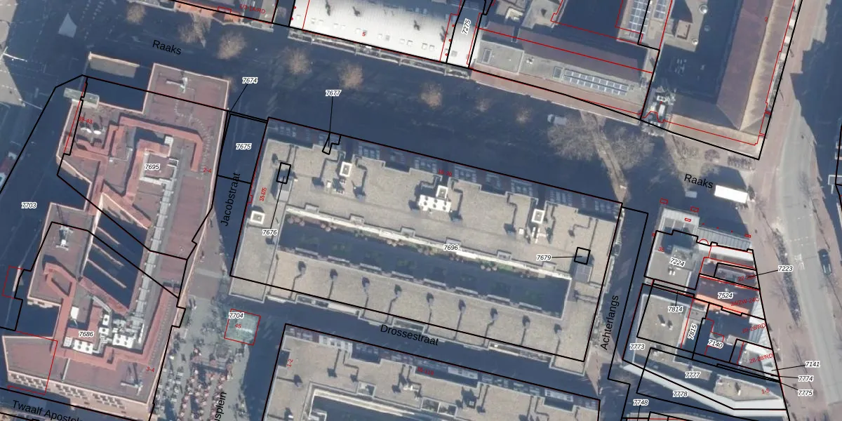 Raaks 24-G is gelegen op kadastraal perceel HLM01C7696. Deze kadastrale aanduiding is uniek en wordt gebruikt door het Kadaster om eigendomsrechten en andere zakelijke rechten vast te leggen. Het perceel maakt onderdeel uit van de kadastrale gemeente Haarlem.
