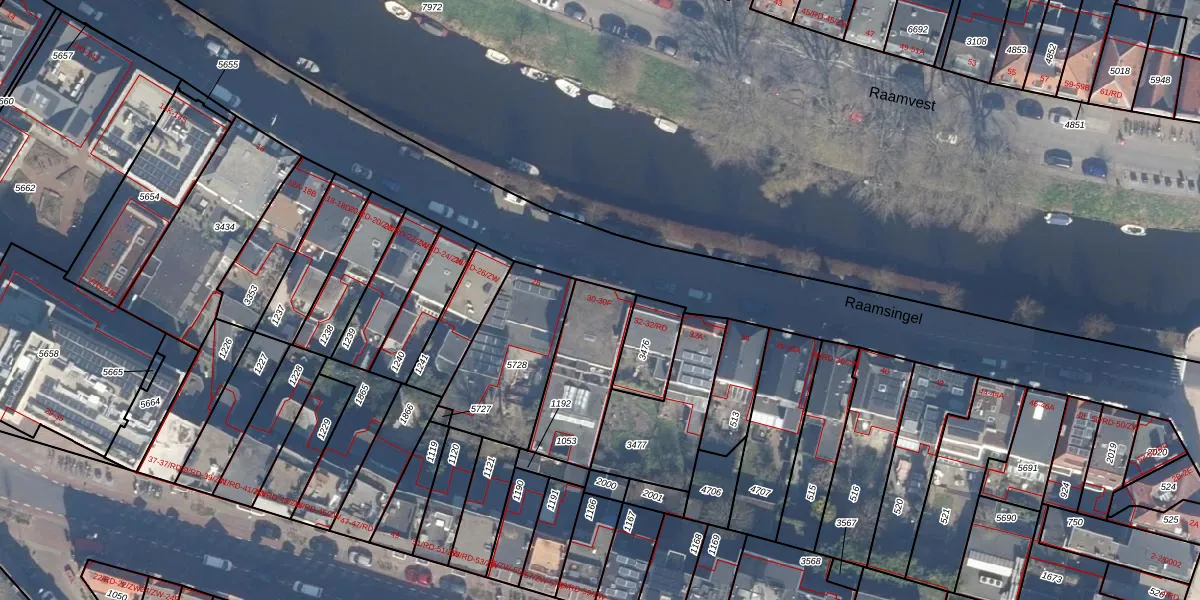 Raamsingel 30 is gelegen op kadastraal perceel HLM01I1053. Deze kadastrale aanduiding is uniek en wordt gebruikt door het Kadaster om eigendomsrechten en andere zakelijke rechten vast te leggen. Het perceel maakt onderdeel uit van de kadastrale gemeente Haarlem.
