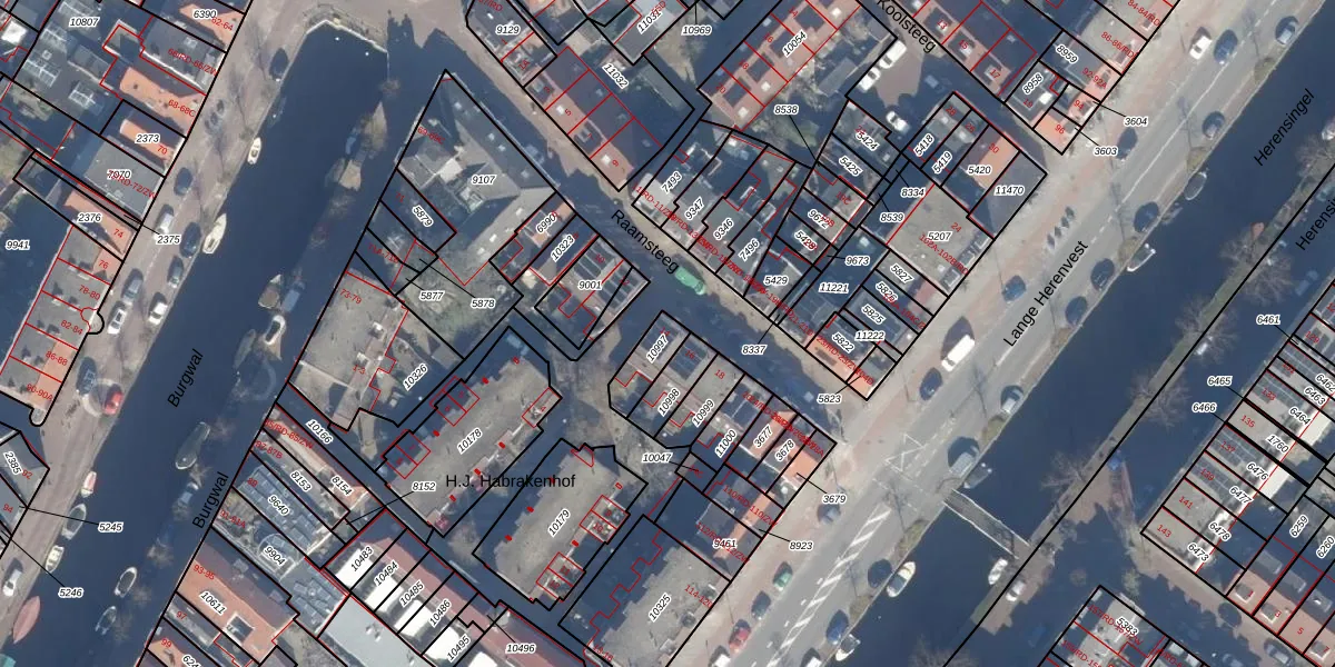 Het perceel waarop Raamsteeg 14 staat heeft een oppervlakte van 80 m². Dit is een klein perceel. De perceeloppervlakte wordt geregistreerd door het Kadaster. Gedetailleerde informatie over de maten van dit perceel kunt u vinden in het rapport Kadastrale kaart met maatvoering van Raamsteeg 14.
