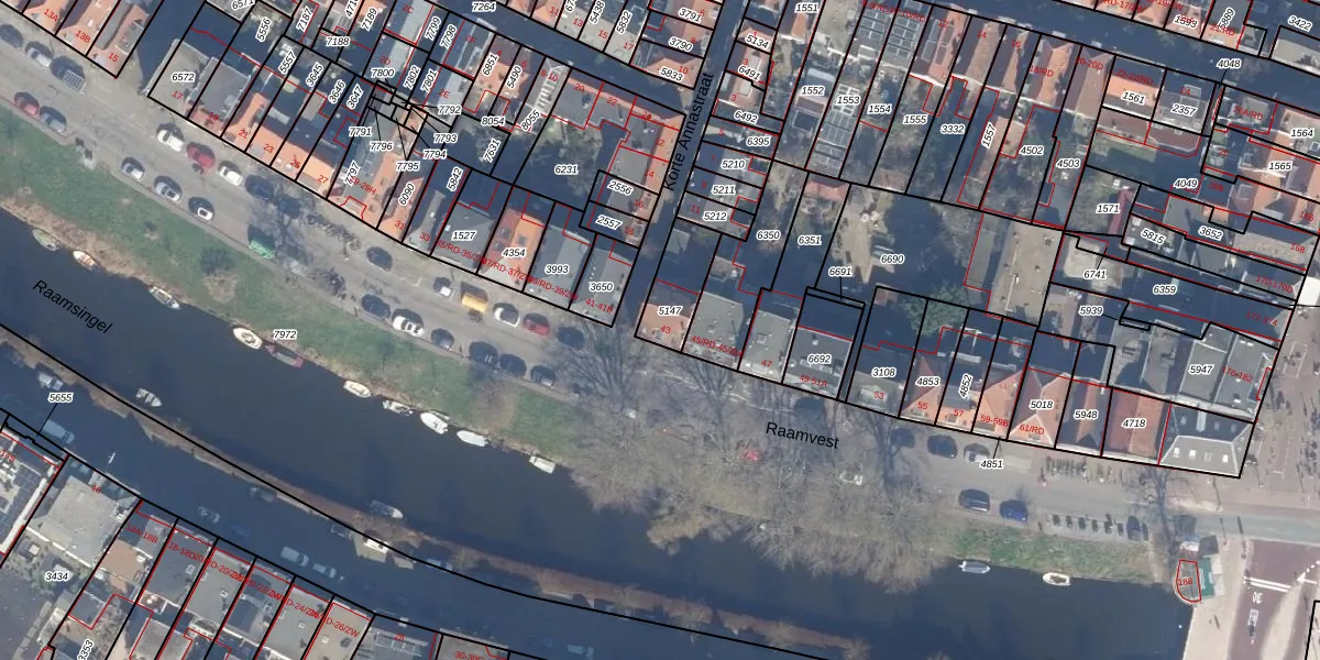 Het perceel waarop Raamvest 43 staat heeft een oppervlakte van 142 m². Dit is een middelgroot perceel. De perceeloppervlakte wordt geregistreerd door het Kadaster. Gedetailleerde informatie over de maten van dit perceel kunt u vinden in het rapport Kadastrale kaart met maatvoering van Raamvest 43.