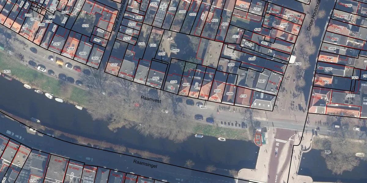 Het perceel waarop Raamvest 55 staat heeft een oppervlakte van 101 m². Dit is een middelgroot perceel. De perceeloppervlakte wordt geregistreerd door het Kadaster. Gedetailleerde informatie over de maten van dit perceel kunt u vinden in het rapport Kadastrale kaart met maatvoering van Raamvest 55.