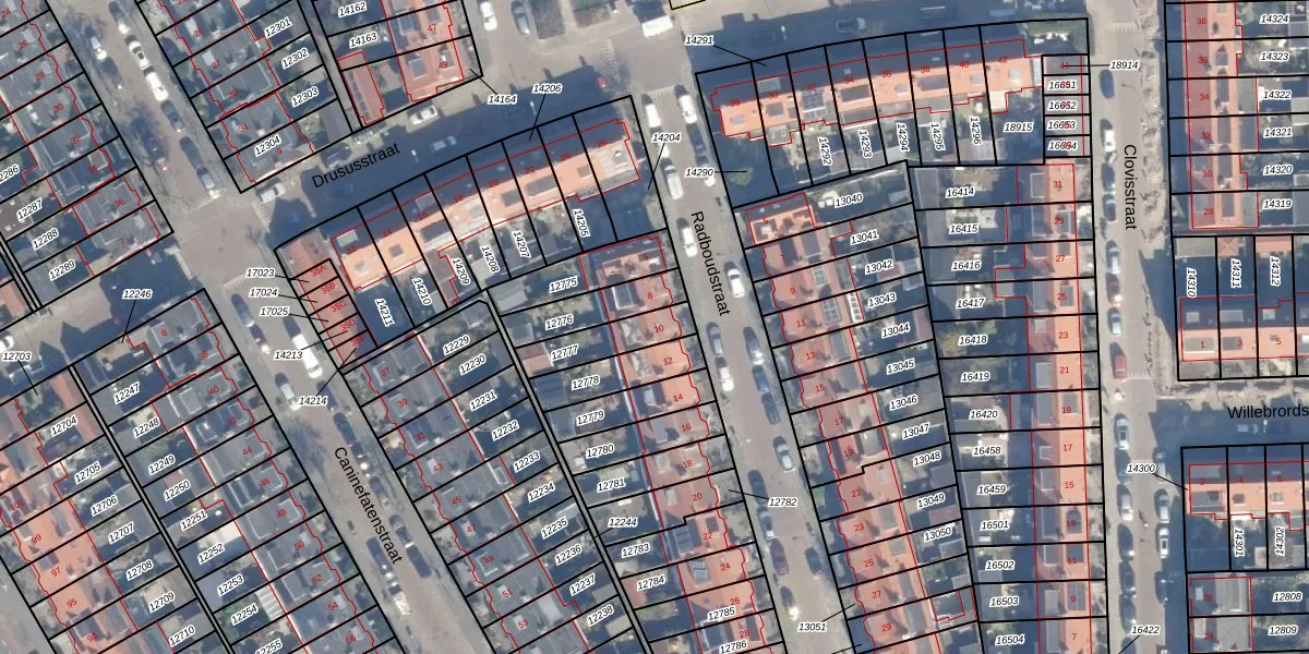 Het perceel waarop Radboudstraat 10 staat heeft een oppervlakte van 143 m². Dit is een middelgroot perceel. De perceeloppervlakte wordt geregistreerd door het Kadaster. Gedetailleerde informatie over de maten van dit perceel kunt u vinden in het rapport Kadastrale kaart met maatvoering van Radboudstraat 10.