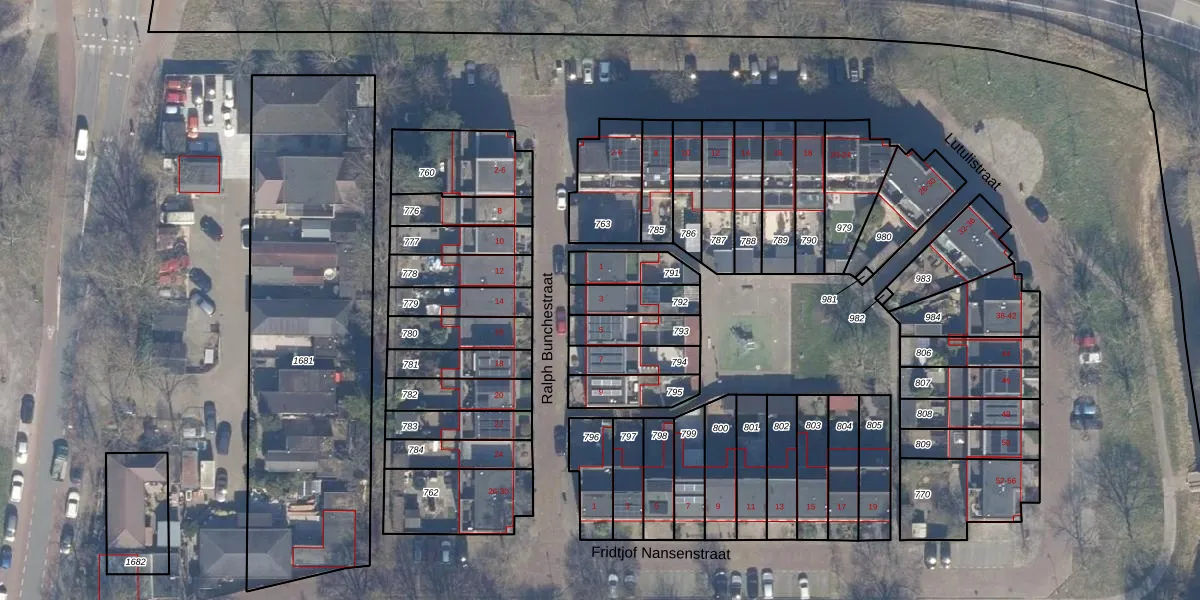 Gebruik de zoekbalk of klik op een perceel voor informatie over de adressen binnen dit perceel.