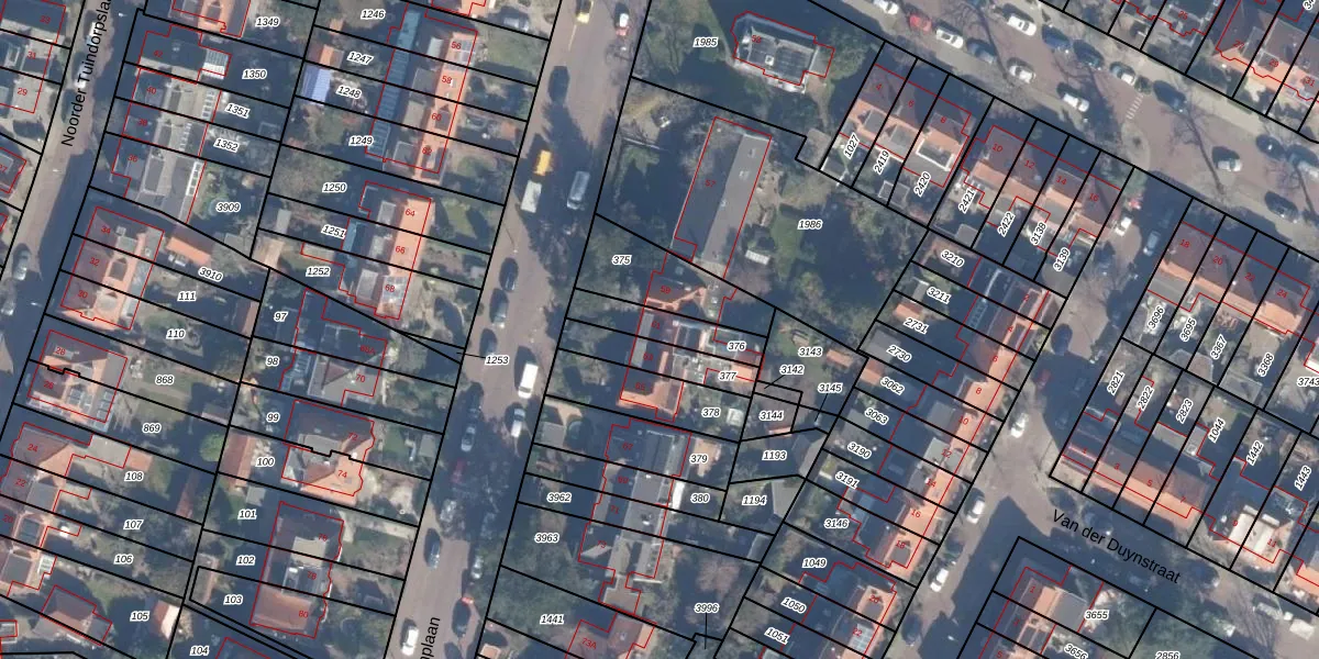 Gebruik de zoekbalk of klik op een perceel voor informatie over de adressen binnen dit perceel.