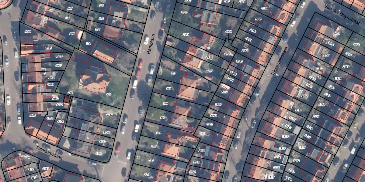 Het perceel waarop Ramplaan 79 staat heeft een oppervlakte van 257 m². Dit is een middelgroot perceel. De perceeloppervlakte wordt geregistreerd door het Kadaster. Gedetailleerde informatie over de maten van dit perceel kunt u vinden in het rapport Kadastrale kaart met maatvoering van Ramplaan 79.