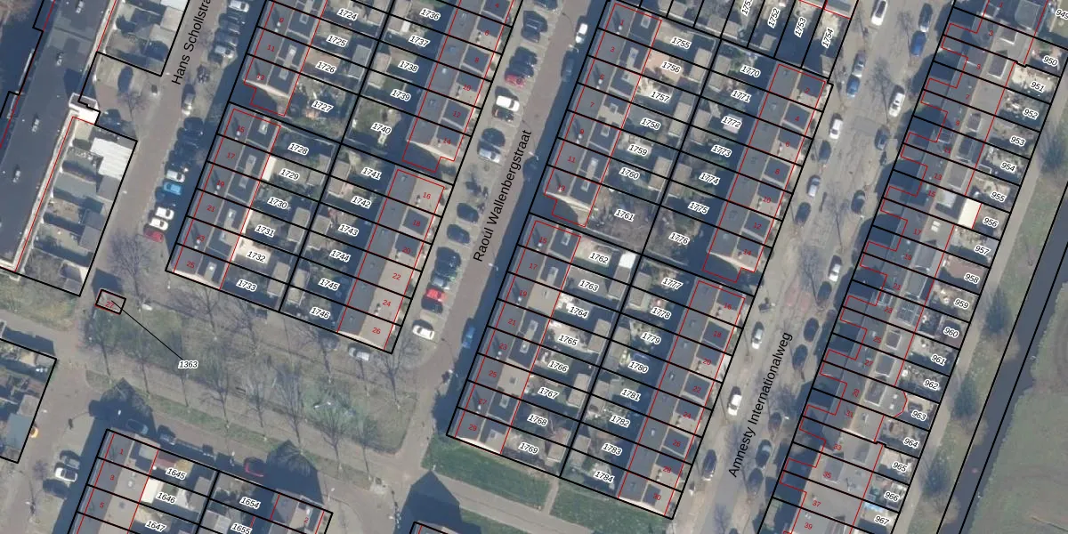 Gebruik de zoekbalk of klik op een perceel voor informatie over de adressen binnen dit perceel.