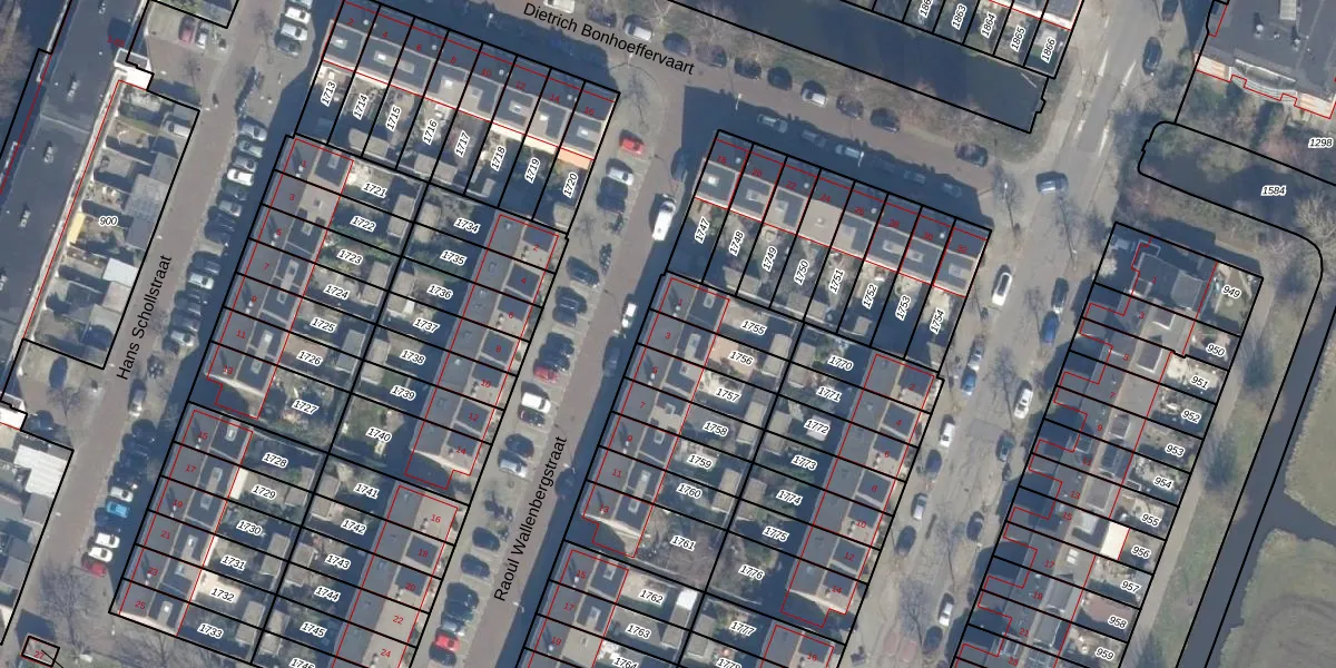 Gebruik de zoekbalk of klik op een perceel voor informatie over de adressen binnen dit perceel.