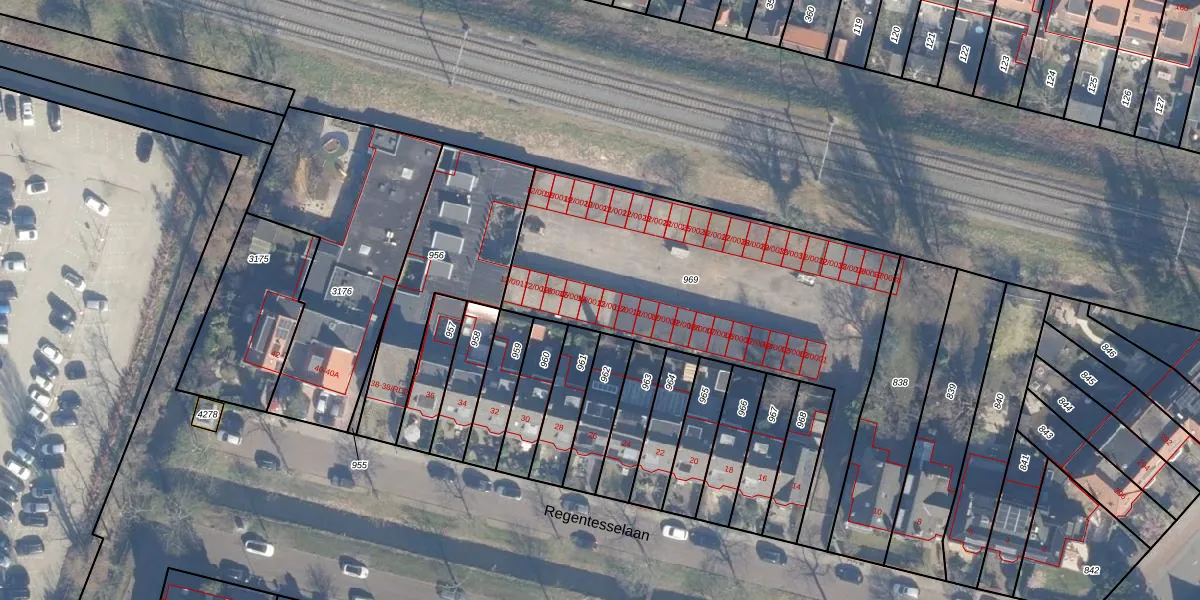 Regentesselaan 12-0013 is gelegen op kadastraal perceel HLM02T969. Deze kadastrale aanduiding is uniek en wordt gebruikt door het Kadaster om eigendomsrechten en andere zakelijke rechten vast te leggen. Het perceel maakt onderdeel uit van de kadastrale gemeente Haarlem.