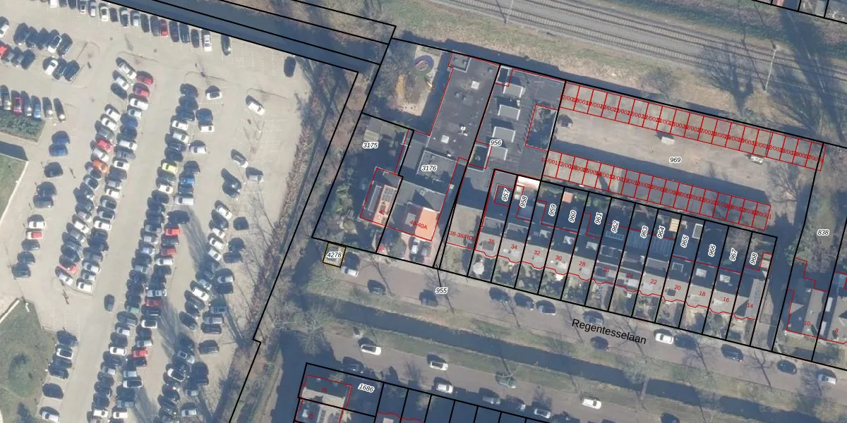 Het perceel waarop Regentesselaan 40-A staat heeft een oppervlakte van 947 m². Dit is een groot perceel. De perceeloppervlakte wordt geregistreerd door het Kadaster. Gedetailleerde informatie over de maten van dit perceel kunt u vinden in het rapport Kadastrale kaart met maatvoering van Regentesselaan 40-A.