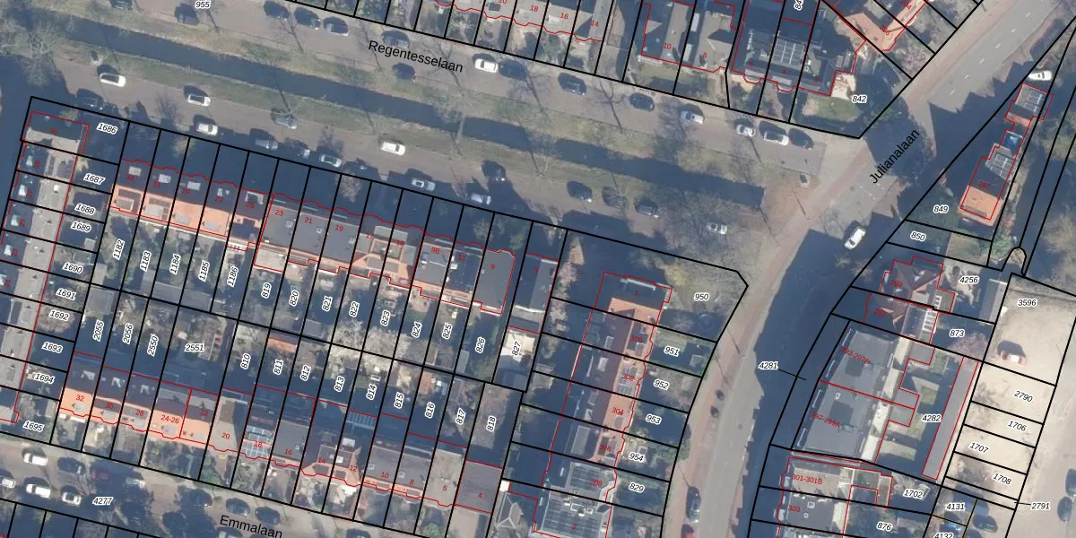 Het perceel waarop Regentesselaan 5 staat heeft een oppervlakte van 202 m². Dit is een middelgroot perceel. De perceeloppervlakte wordt geregistreerd door het Kadaster. Gedetailleerde informatie over de maten van dit perceel kunt u vinden in het rapport Kadastrale kaart met maatvoering van Regentesselaan 5.