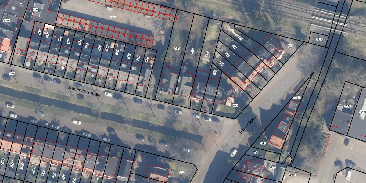 Het perceel waarop Regentesselaan 8 staat heeft een oppervlakte van 439 m². Dit is een groot perceel. De perceeloppervlakte wordt geregistreerd door het Kadaster. Gedetailleerde informatie over de maten van dit perceel kunt u vinden in het rapport Kadastrale kaart met maatvoering van Regentesselaan 8.