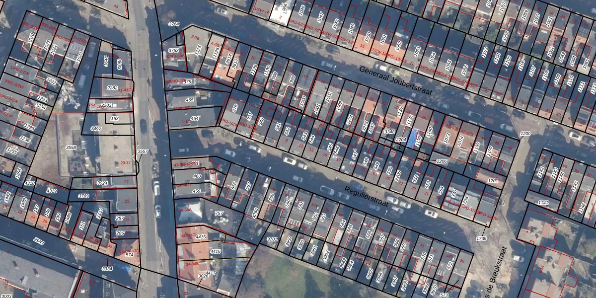 Gebruik de zoekbalk of klik op een perceel voor informatie over de adressen binnen dit perceel.