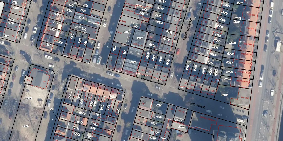 Het perceel waarop Reitzstraat 119 staat heeft een oppervlakte van 122 m². Dit is een middelgroot perceel. De perceeloppervlakte wordt geregistreerd door het Kadaster. Gedetailleerde informatie over de maten van dit perceel kunt u vinden in het rapport Kadastrale kaart met maatvoering van Reitzstraat 119.