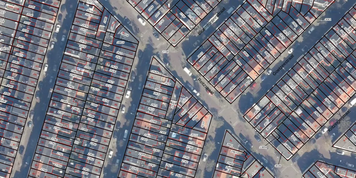 Gebruik de zoekbalk of klik op een perceel voor informatie over de adressen binnen dit perceel.