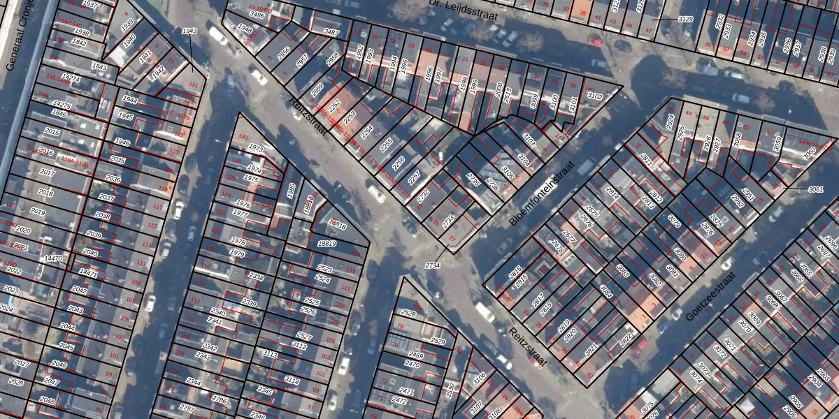 Het perceel waarop Reitzstraat 23 staat heeft een oppervlakte van 71 m². Dit is een klein perceel. De perceeloppervlakte wordt geregistreerd door het Kadaster. Gedetailleerde informatie over de maten van dit perceel kunt u vinden in het rapport Kadastrale kaart met maatvoering van Reitzstraat 23.
