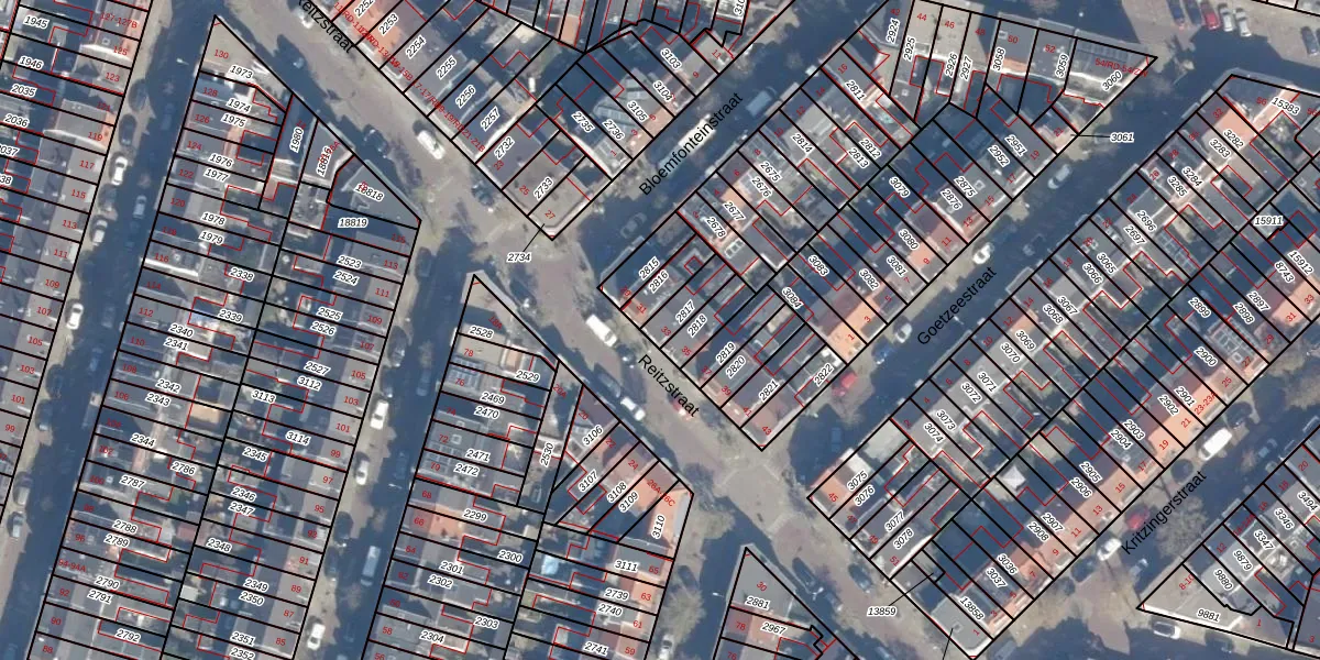 Het perceel waarop Reitzstraat 33 staat heeft een oppervlakte van 71 m². Dit is een klein perceel. De perceeloppervlakte wordt geregistreerd door het Kadaster. Gedetailleerde informatie over de maten van dit perceel kunt u vinden in het rapport Kadastrale kaart met maatvoering van Reitzstraat 33.
