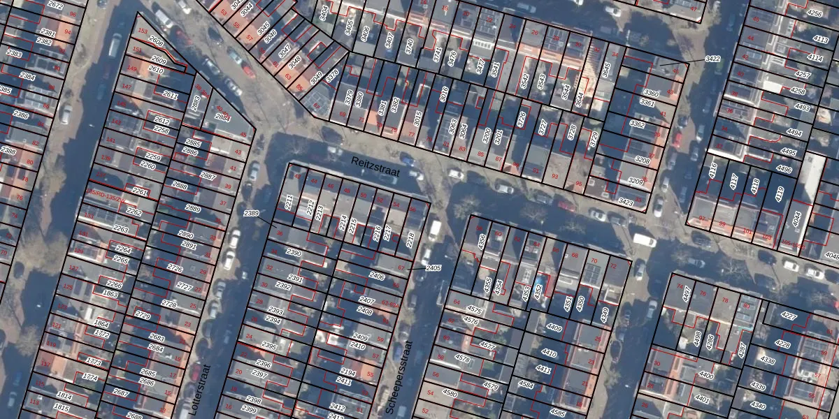Gebruik de zoekbalk of klik op een perceel voor informatie over de adressen binnen dit perceel.