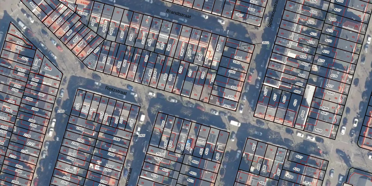 Het perceel waarop Reitzstraat 91 staat heeft een oppervlakte van 97 m². Dit is een klein perceel. De perceeloppervlakte wordt geregistreerd door het Kadaster. Gedetailleerde informatie over de maten van dit perceel kunt u vinden in het rapport Kadastrale kaart met maatvoering van Reitzstraat 91.