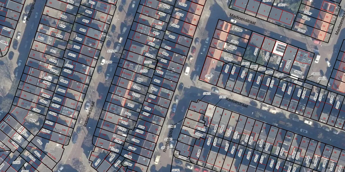 Gebruik de zoekbalk of klik op een perceel voor informatie over de adressen binnen dit perceel.