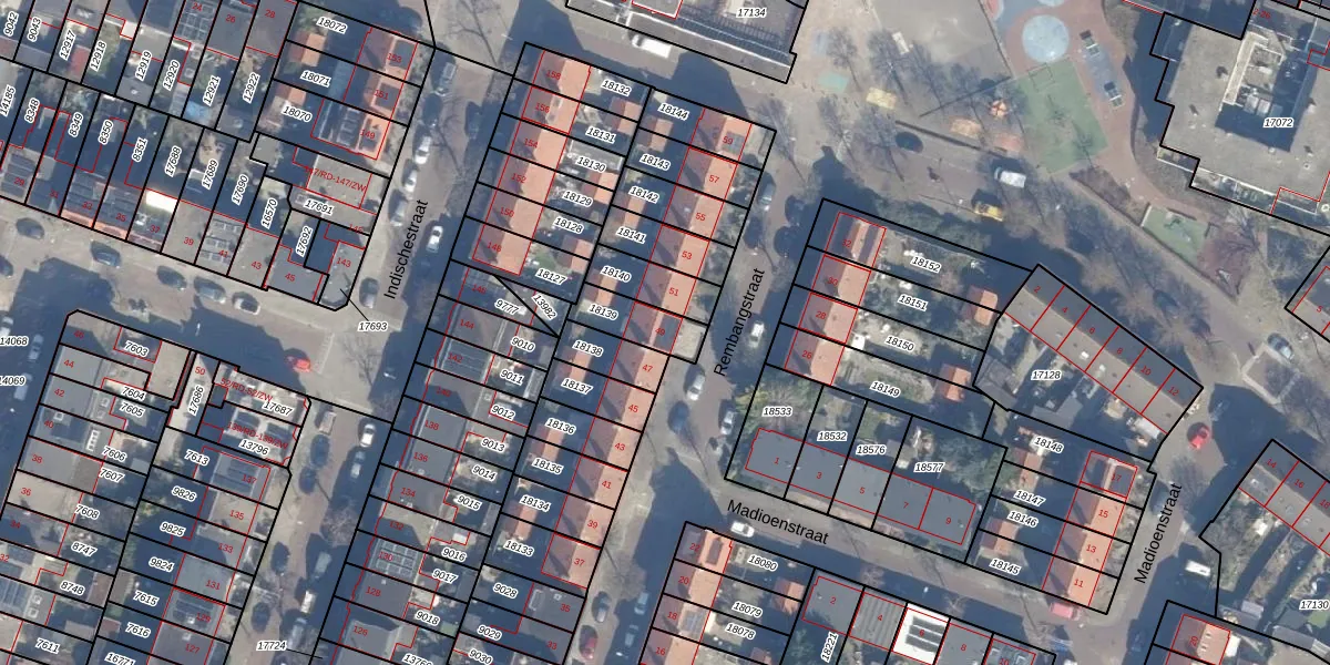 Het perceel waarop Rembangstraat 49 staat heeft een oppervlakte van 125 m². Dit is een middelgroot perceel. De perceeloppervlakte wordt geregistreerd door het Kadaster. Gedetailleerde informatie over de maten van dit perceel kunt u vinden in het rapport Kadastrale kaart met maatvoering van Rembangstraat 49.