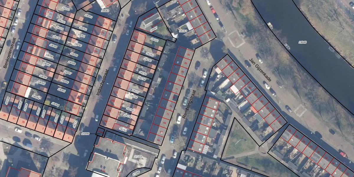 Het perceel waarop Rembangstraat 77 staat heeft een oppervlakte van 1636 m². Dit is een zeer groot perceel. De perceeloppervlakte wordt geregistreerd door het Kadaster. Gedetailleerde informatie over de maten van dit perceel kunt u vinden in het rapport Kadastrale kaart met maatvoering van Rembangstraat 77.
