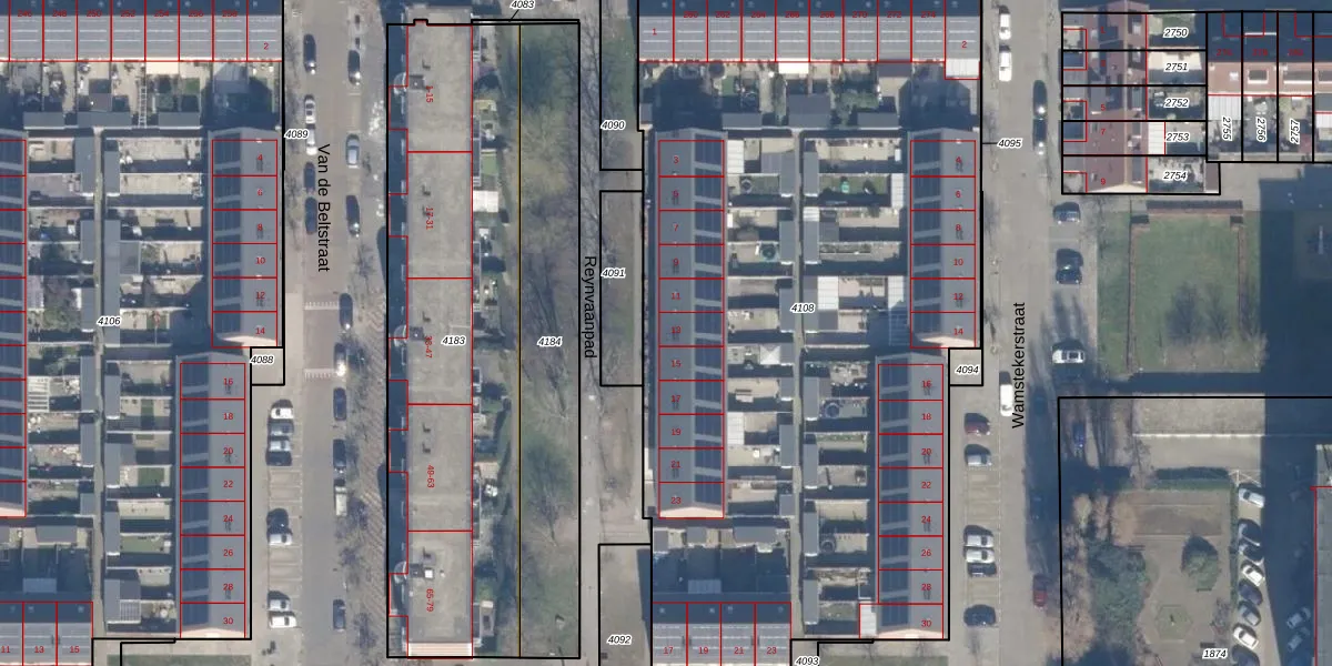 Reynvaanpad 13 is gelegen op kadastraal perceel HLM02P4108. Deze kadastrale aanduiding is uniek en wordt gebruikt door het Kadaster om eigendomsrechten en andere zakelijke rechten vast te leggen. Het perceel maakt onderdeel uit van de kadastrale gemeente Haarlem.