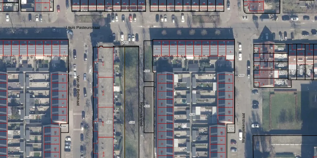 Reynvaanpad 3 is gelegen op kadastraal perceel HLM02P4108. Deze kadastrale aanduiding is uniek en wordt gebruikt door het Kadaster om eigendomsrechten en andere zakelijke rechten vast te leggen. Het perceel maakt onderdeel uit van de kadastrale gemeente Haarlem.