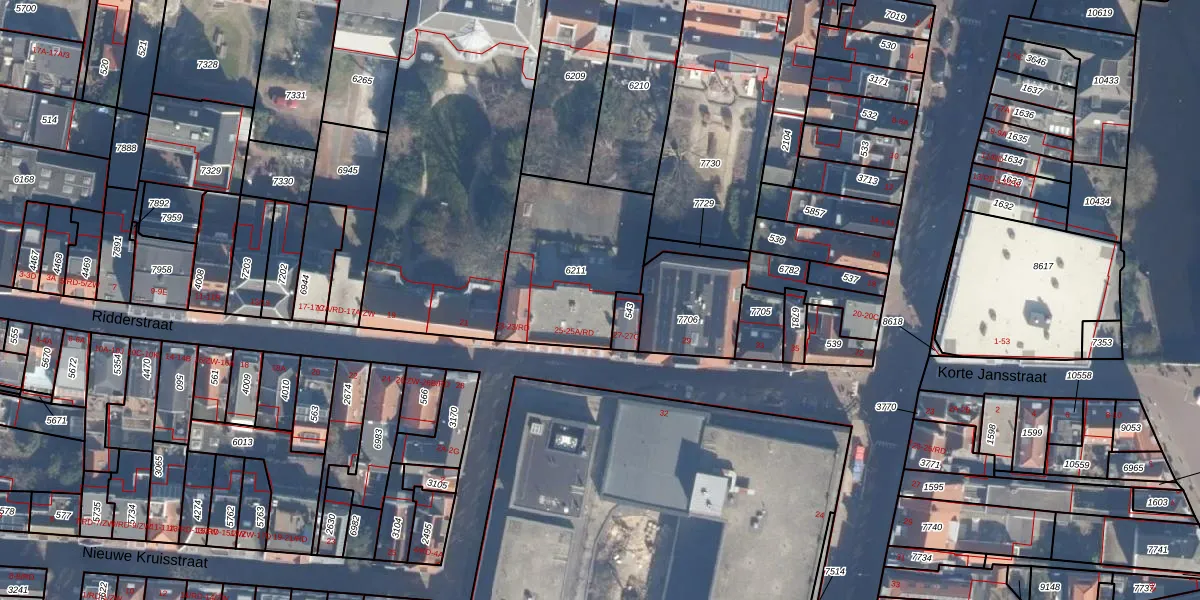 Ridderstraat 25-A-RD is gelegen op kadastraal perceel HLM01C6211. Deze kadastrale aanduiding is uniek en wordt gebruikt door het Kadaster om eigendomsrechten en andere zakelijke rechten vast te leggen. Het perceel maakt onderdeel uit van de kadastrale gemeente Haarlem.