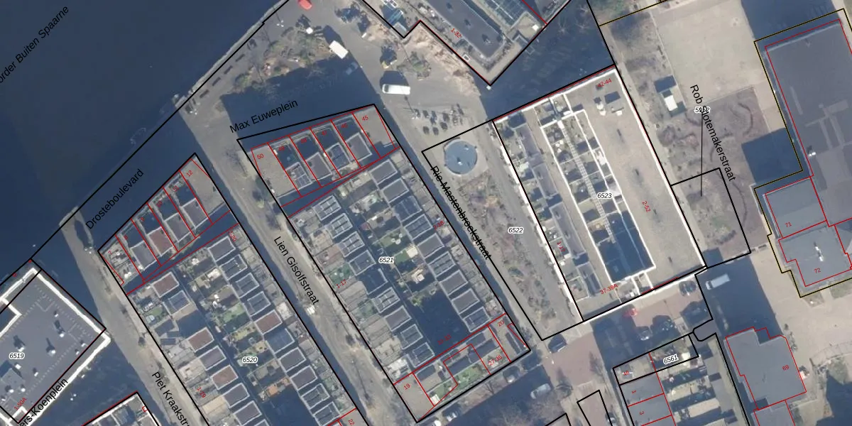 Het adres ligt op het perceel HLM01-E-6521, dat zich in de kadastrale gemeente Haarlem bevindt. De gemiddelde perceeloppervlakte in de kadastrale gemeente Haarlem is 328,09 m². Dit perceel is met zijn 2326 m² dus groter dan gemiddeld. Het kleinste perceel in de kadastrale gemeente is 0 m² groot. De grootste perceeloppervlakte is 13,9 ha. Op het perceel liggen in totaal 32 adressen. In de Basisregistratie Kadaster (BRK) werden de grenzen van het perceel geregistreerd op 08-05-2006.