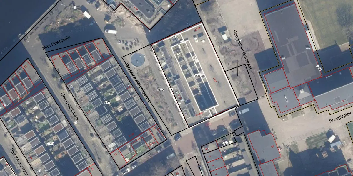Het adres ligt op het perceel HLM01-E-6523, dat zich in de kadastrale gemeente Haarlem bevindt. De gemiddelde perceeloppervlakte in de kadastrale gemeente Haarlem is 328,19 m². Dit perceel is met zijn 1647 m² dus groter dan gemiddeld. Het kleinste perceel in de kadastrale gemeente is 0 m² groot. De grootste perceeloppervlakte is 13,9 ha. Op het perceel liggen in totaal 41 adressen. De huidige grenzen van het perceel zijn digitaal in de Basisregistratie Kadaster (BRK) geregistreerd op 02-12-2009.