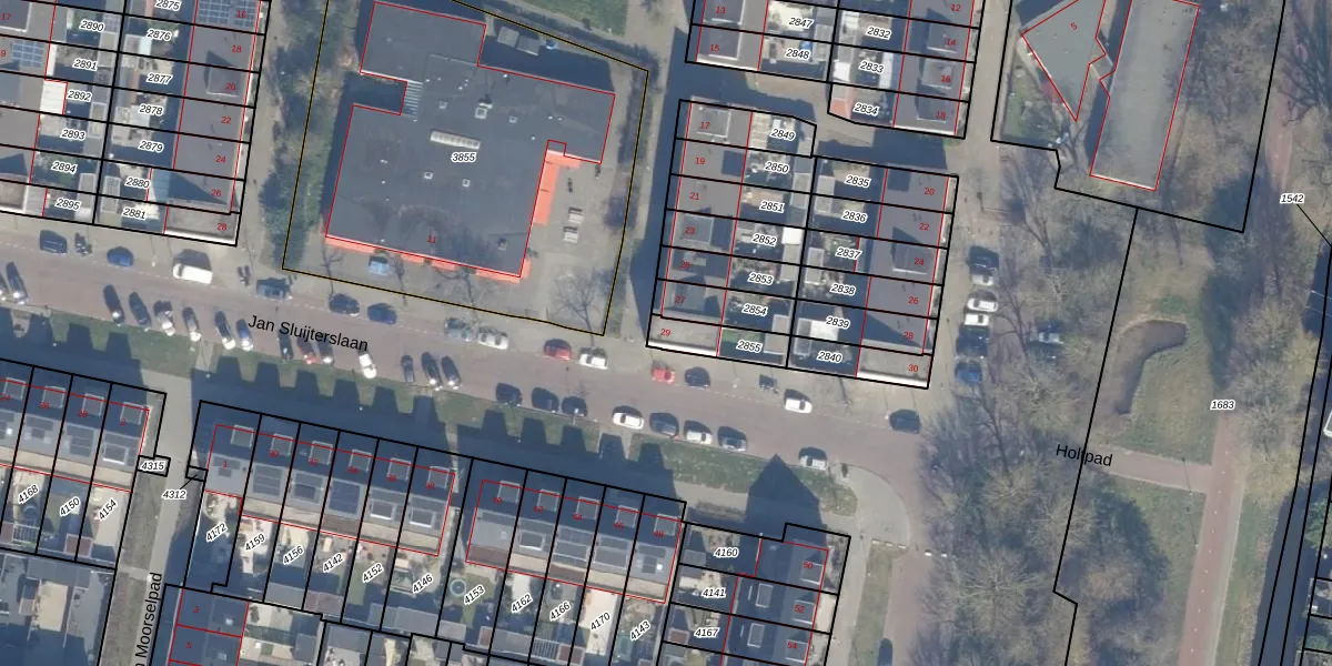Gebruik de zoekbalk of klik op een perceel voor informatie over de adressen binnen dit perceel.