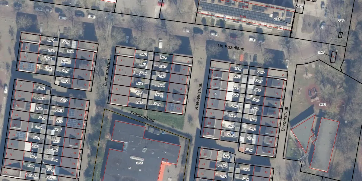 Gebruik de zoekbalk of klik op een perceel voor informatie over de adressen binnen dit perceel.