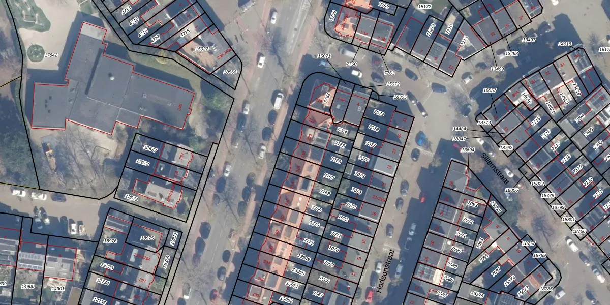 Gebruik de zoekbalk of klik op een perceel voor informatie over de adressen binnen dit perceel.