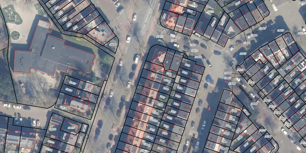 Gebruik de zoekbalk of klik op een perceel voor informatie over de adressen binnen dit perceel.
