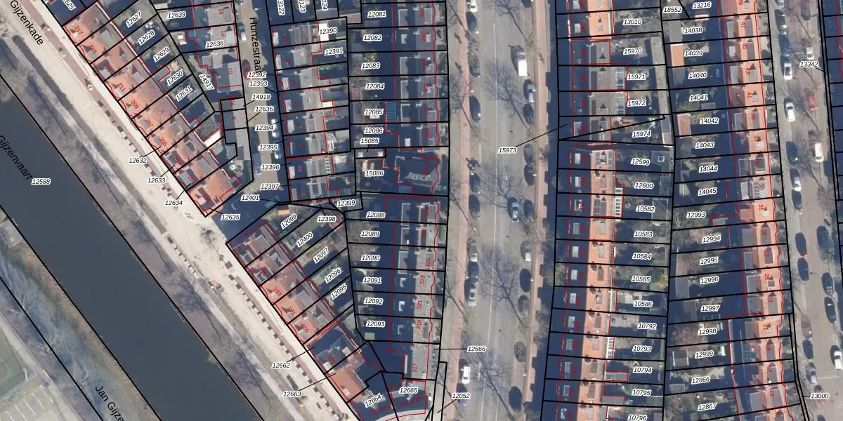 Gebruik de zoekbalk of klik op een perceel voor informatie over de adressen binnen dit perceel.
