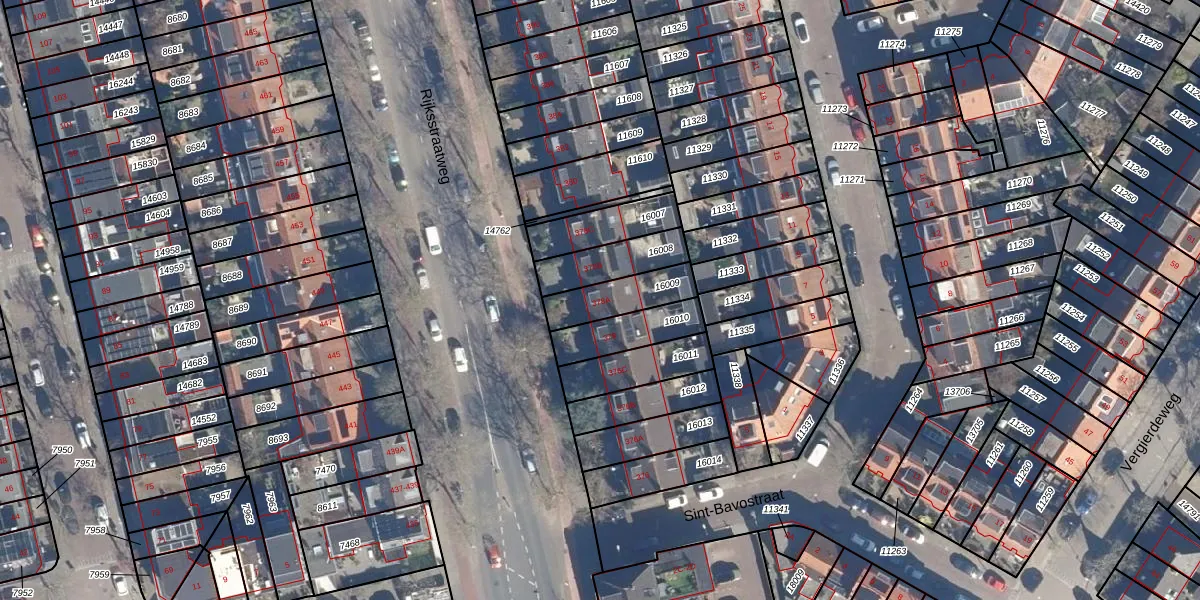 Gebruik de zoekbalk of klik op een perceel voor informatie over de adressen binnen dit perceel.