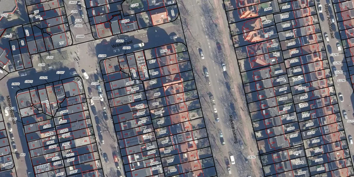 Gebruik de zoekbalk of klik op een perceel voor informatie over de adressen binnen dit perceel.