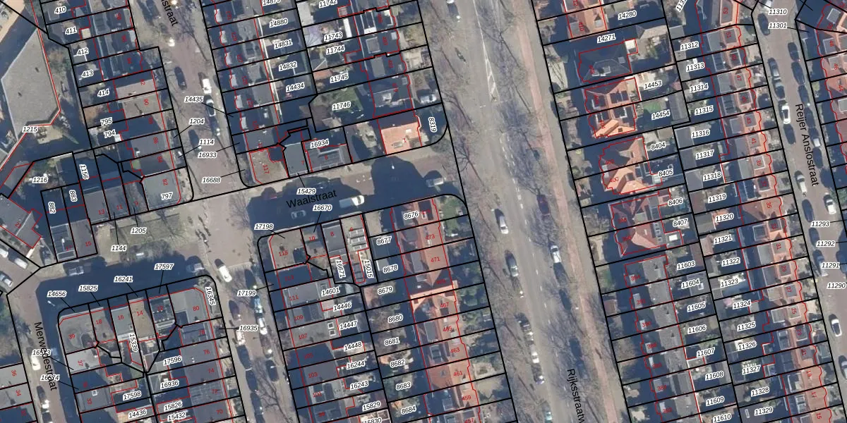 Gebruik de zoekbalk of klik op een perceel voor informatie over de adressen binnen dit perceel.