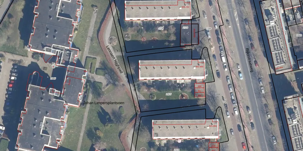 Rijksstraatweg 691 is gelegen op kadastraal perceel STN01A2415. Deze kadastrale aanduiding is uniek en wordt gebruikt door het Kadaster om eigendomsrechten en andere zakelijke rechten vast te leggen. Het perceel maakt onderdeel uit van de kadastrale gemeente Schoten.